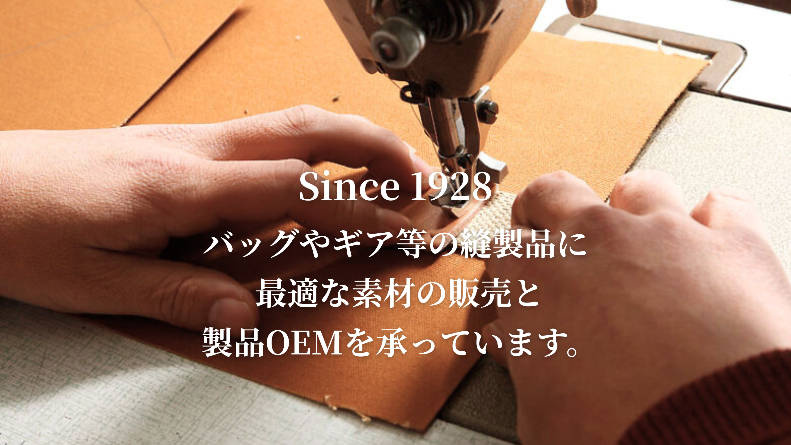 お知らせ 年末年始の営業および出荷スケジュールのご案内2025年12月19日 【出展のお知らせ】ファッションワールド東京 秋 20252025年8月25日 【お知らせ】ホームページをリニューアルしました2025年8月24日 創業97周年。バッグやギア等の縫製品に最適な生地の販売と、OEMへの想いを代表メッセージでご紹介します。 メッセージを見る 企画・素材開発から生産・検品まで、国内外ネットワークで最適な製品づくりをサポートします。 OEMの流れ 天然繊維・合成繊維・本革・合成皮革など、多様なバッグ用素材を取り揃えています。 素材ラインアップ 素材・加工・OEM・ショールームなど、よくあるご質問と回答をまとめています。 よくある質問